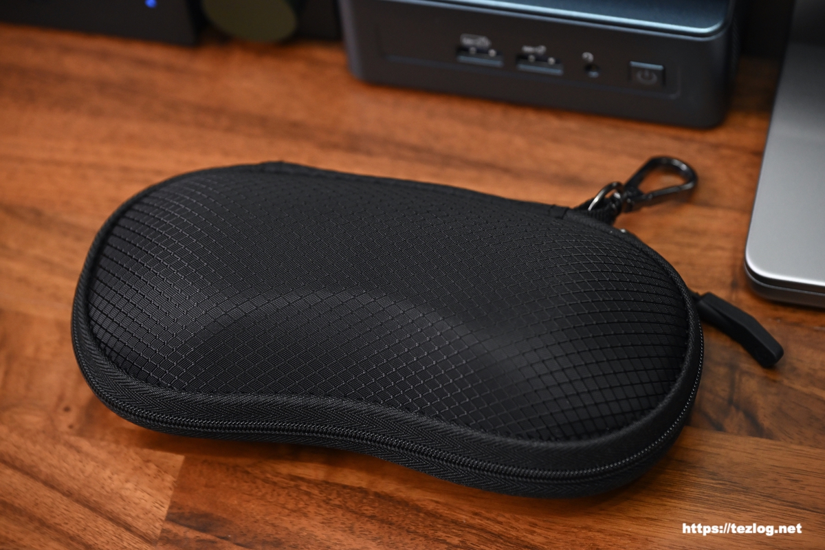 XREALなどのARグラス・XRグラスをバッグにぶら下げたりして持ち歩いたり出し入れのしやすいカラビナ付きサングラスケースを紹介しました。